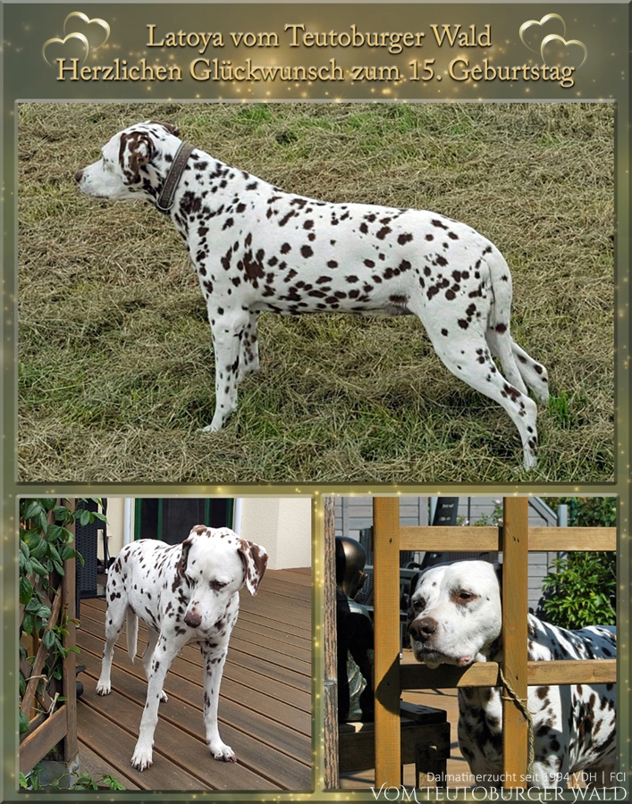Liebe „Latoya“ wir wünschen dir aus tiefstem Herzen alles Liebe zum 15. Geburtstag, weiterhin viel Gesundheit und noch viele wundervolle und unvergessliche Momente im Kreise deiner lieben Familie. Wir sind so glücklich, dass es dir immer noch so gut geht und du sogar trotz deines fortgeschrittenen Alters die täglichen Spaziergänge gemeinsam mit deiner Familie genießen darfst.
